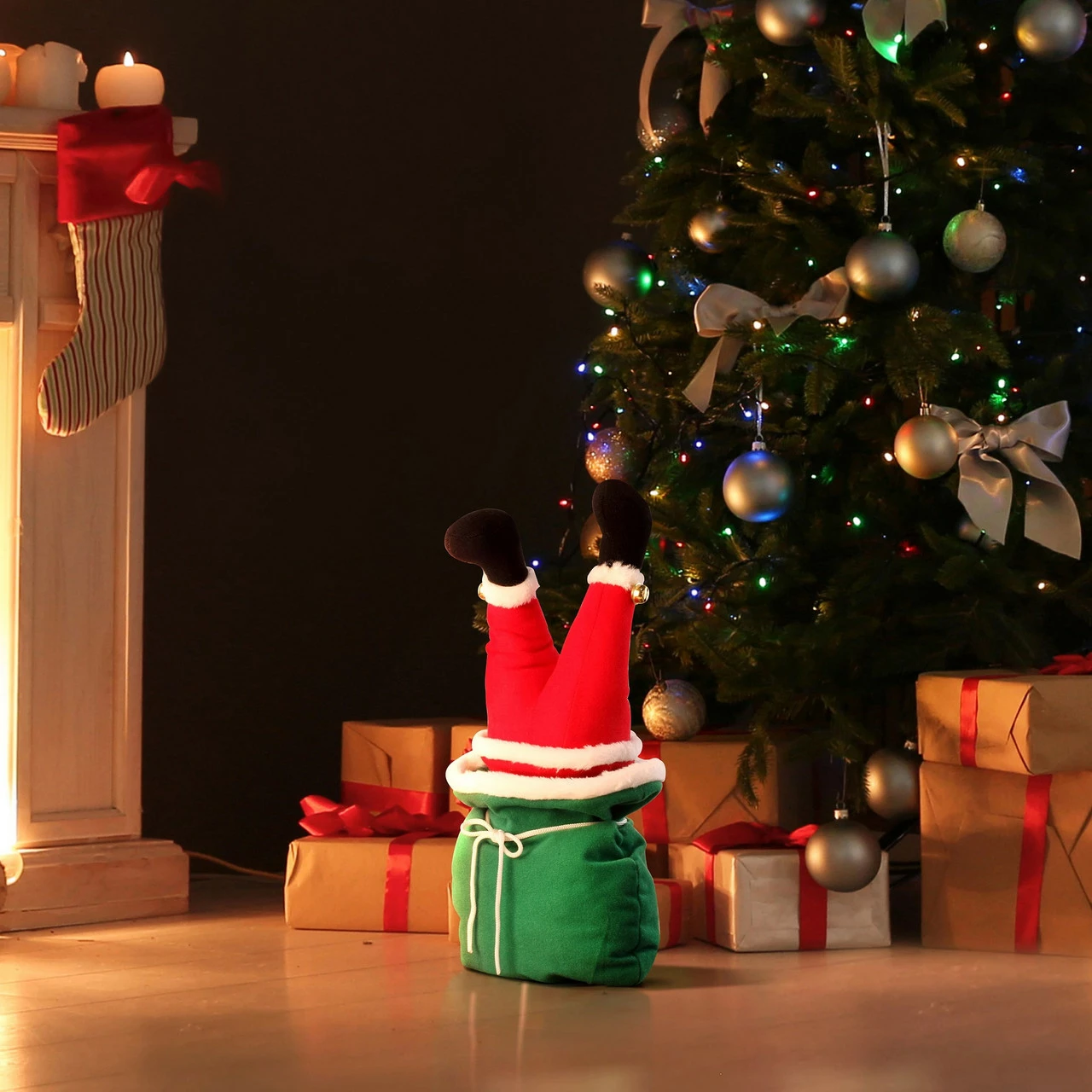 Santa stuck inside of his toy sack