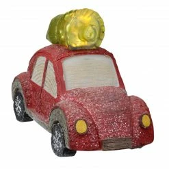 Allstate 6″ Red And Green LED Embellished With Glitter Retro Car With Tree On Top Decoration