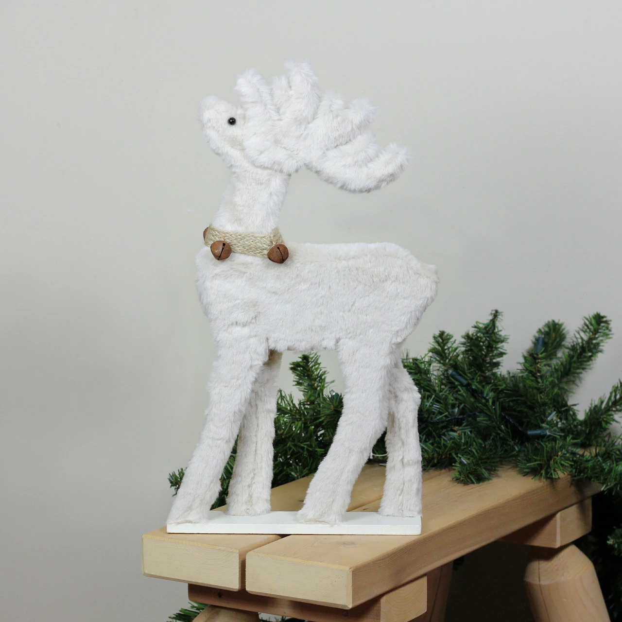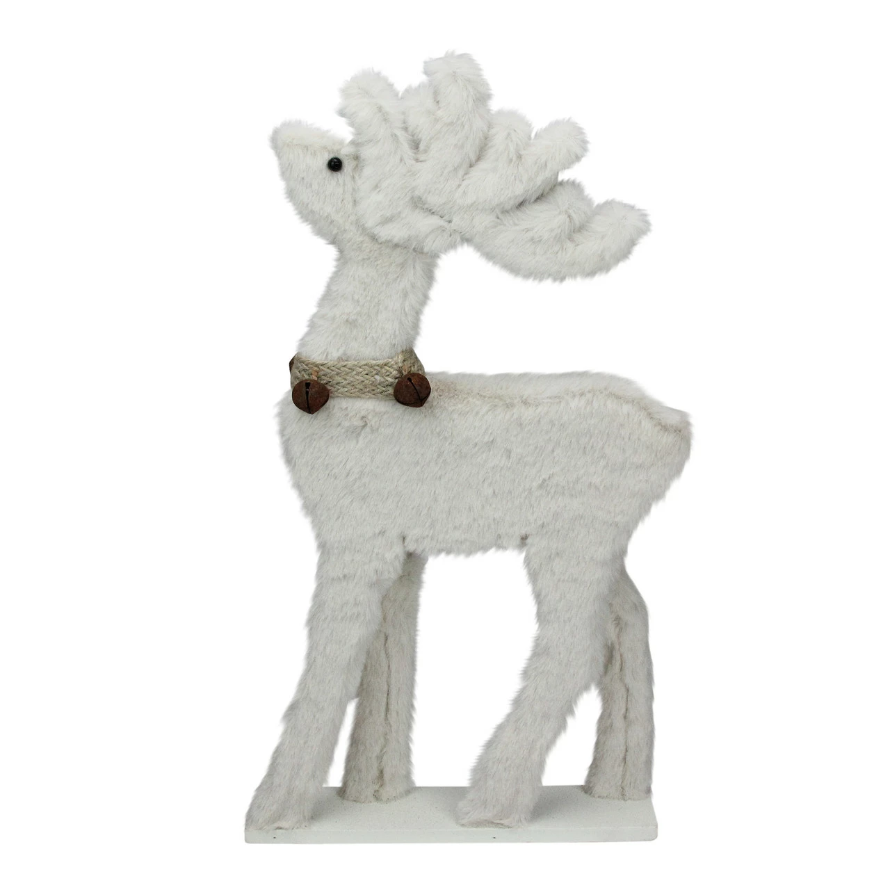 Standing reindeer with faux fur and a twine collar with rustic bells
