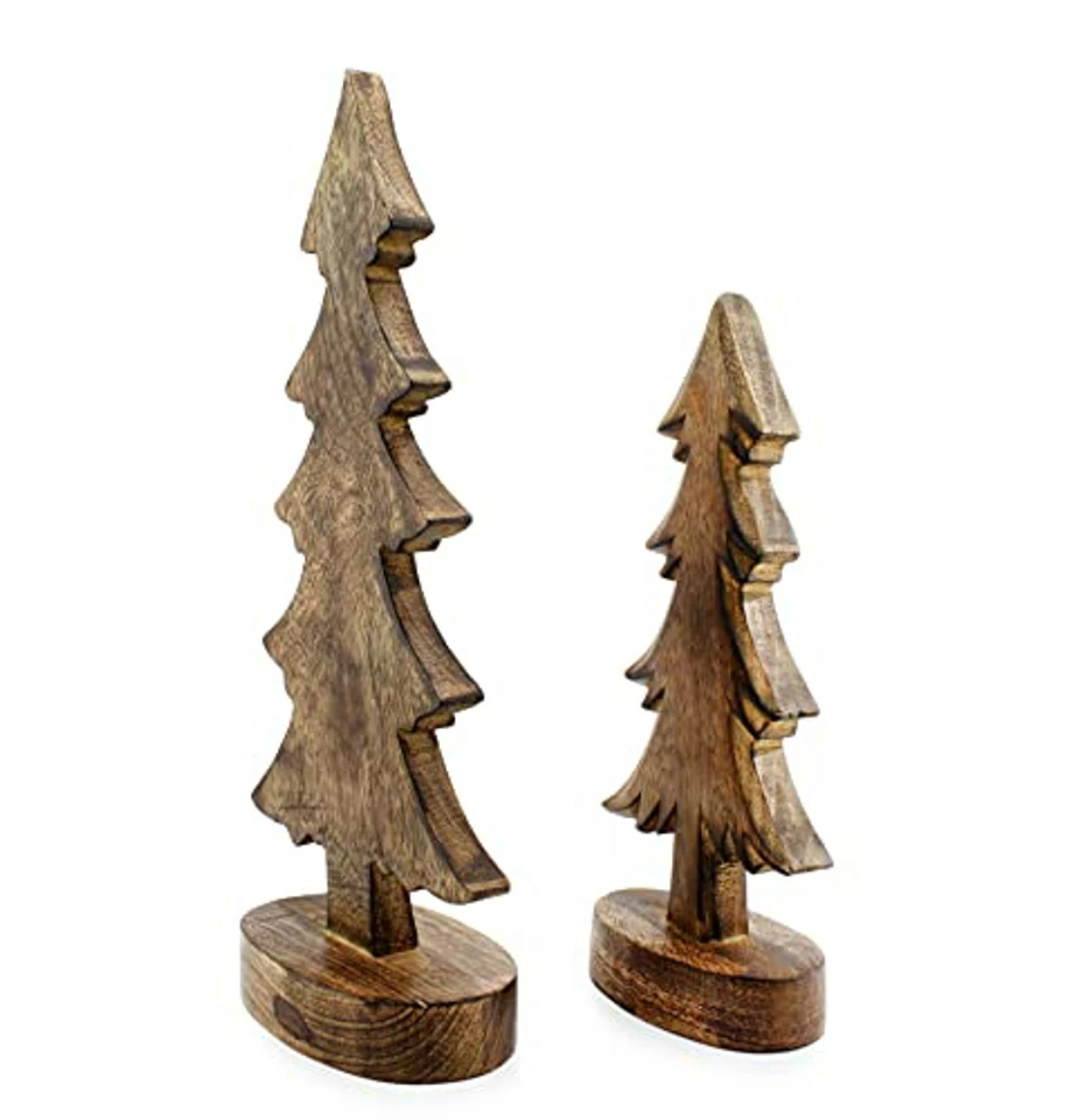 This handcrafted mango wood tree figurine has a charred brown finish that is a perfect addition to your farmhouse decor. Place it on a shelf, table or bookcase, or add it to a centerpiece for that extra touch of country charm. Use it as a decoration for the holiday season and then leave it out year-round to display a rustic, natural feeling at your home or office. These trees look perfect with the AuldHome tin Christmas village houses.