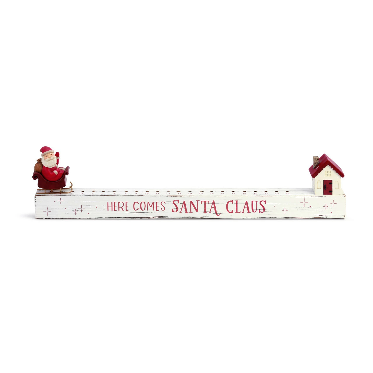 The Here Comes Santa Claus Countdown from the Holiday Mercantile Collection is the perfect festive decoration to add to any home this holiday season. This piece is ideal for getting both friends and family involved in the wonder of the Christmas season, with an interactive design and elegant appearance. The Holiday Mercantile Collection of seasonal home décor and accessories features the perfect selection to truly celebrate the holiday season in elegant and playful style. This interactive Christmas décor piece features an adjustable Santa piece that can be moved down as the days pass up until Christmas Eve, where he finally rests atop a house, making this advent calendar perfect for gifting to any child to get them excited for the Christmas season. Sentiment: “Here comes Santa Claus” Sentiment: Here comes Santa Claus
