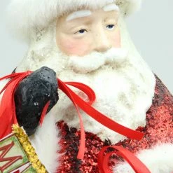 Allstate 17″ Red Glittered Santa Claus Holding “Merry Christmas” Sign With Bells Christmas Figurine