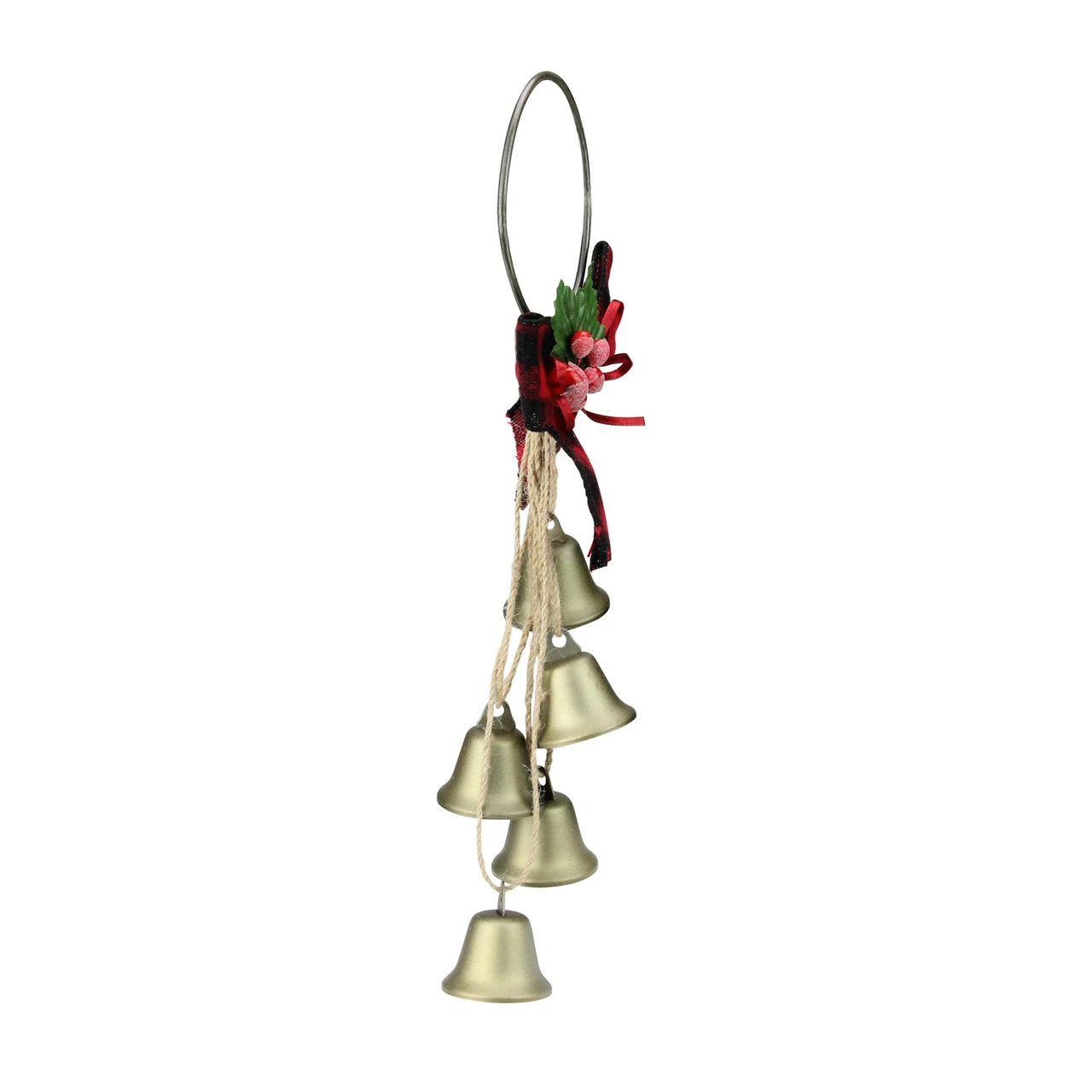 Kurt Adler 12” Rustic Bow With Golden Jingle Bells Christmas Door Hanger
