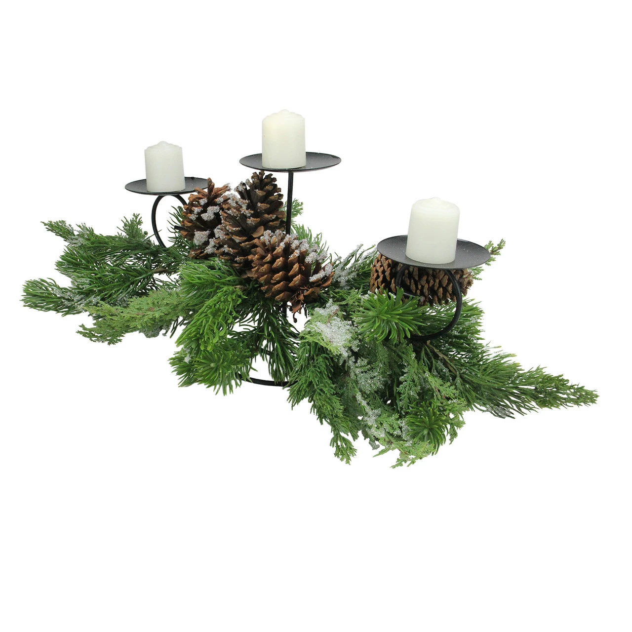 Green and black pine cones Christmas candle holder