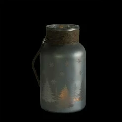 Inside the lantern you’ll find a beautiful winter scene of a deer nestled beneath a fiber-optic lit tree