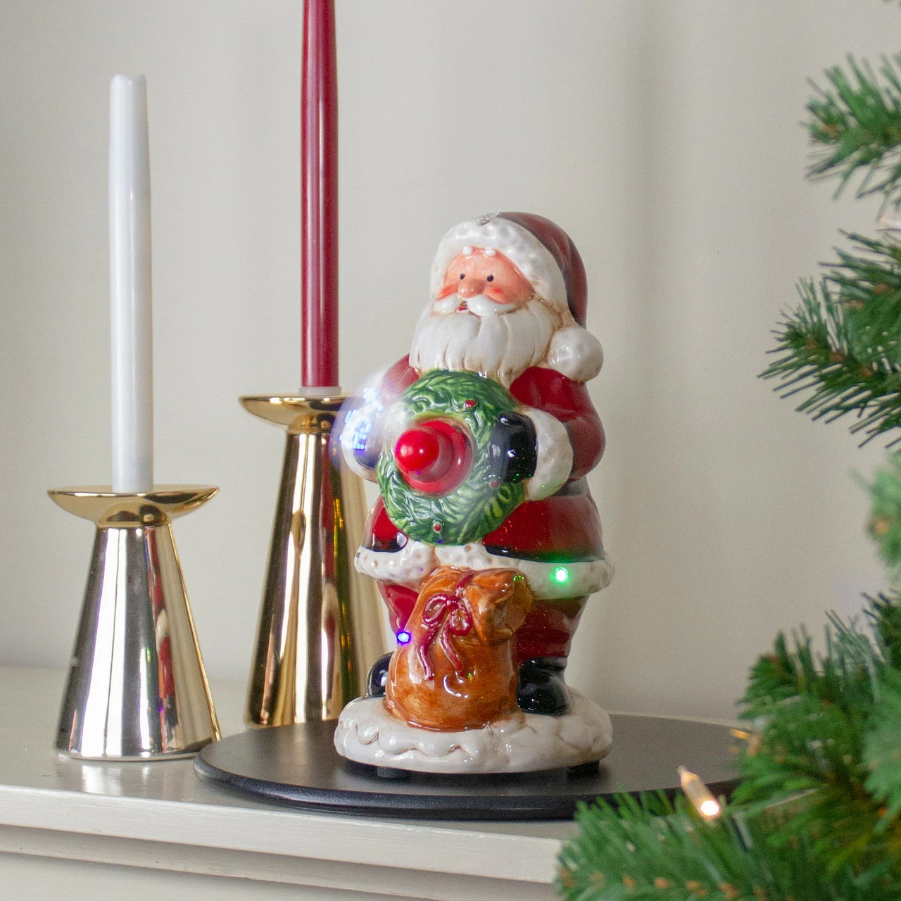 Plays a Christmas song with fan spinning pictures and flashing lights