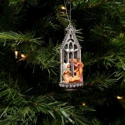 Roman 6.25″ Silver And Brown Fontanini Holy Family Mirrored Arch Christmas Nativity Ornament