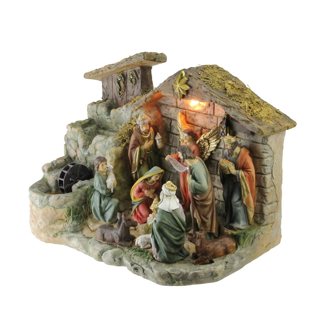 Pre-lit nativity figurine set with water fountain
