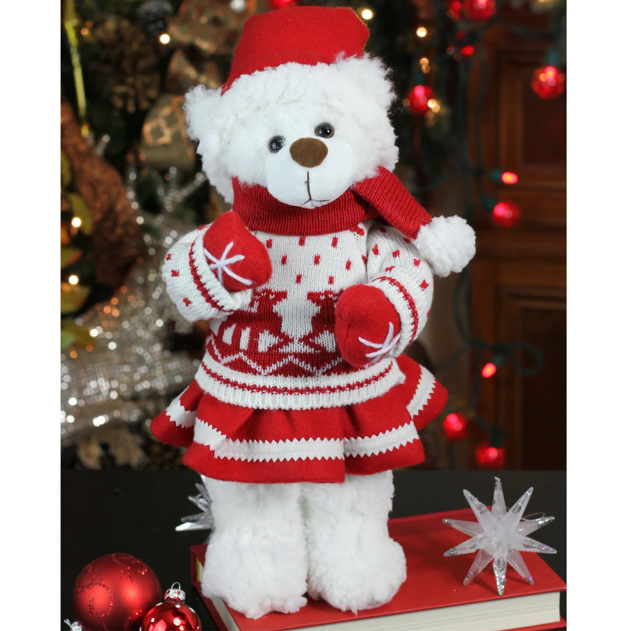 Girl Santa bear in deer sweater Christmas figure decoration
