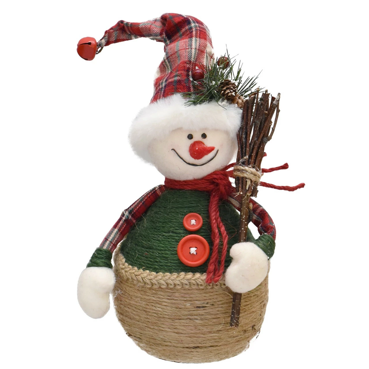 Green and red plaid Snowman Christmas figure