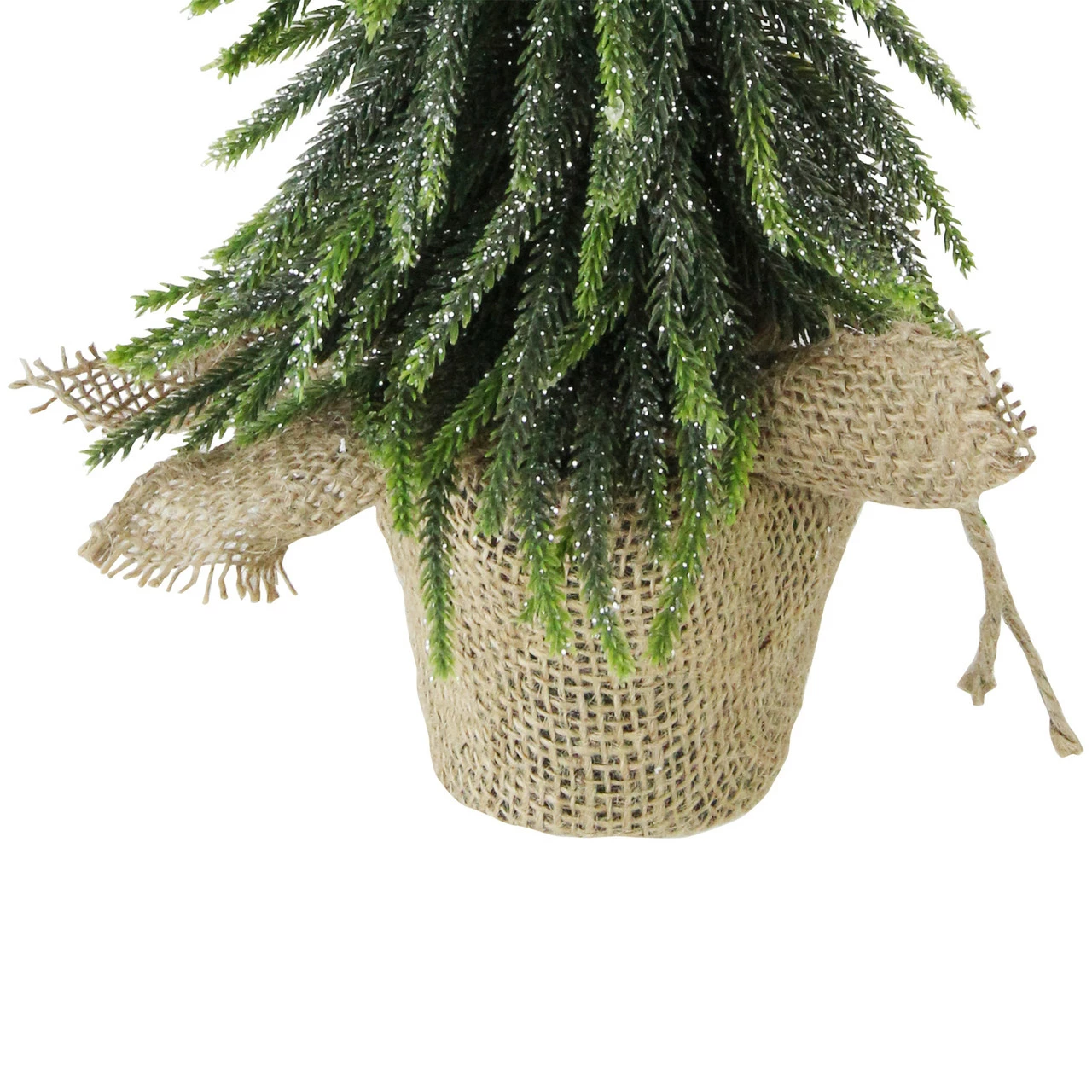 Northlight 14″ Green Glitter Weeping Mini Pine Christmas Tree In Burlap Covered Vase – Unlit