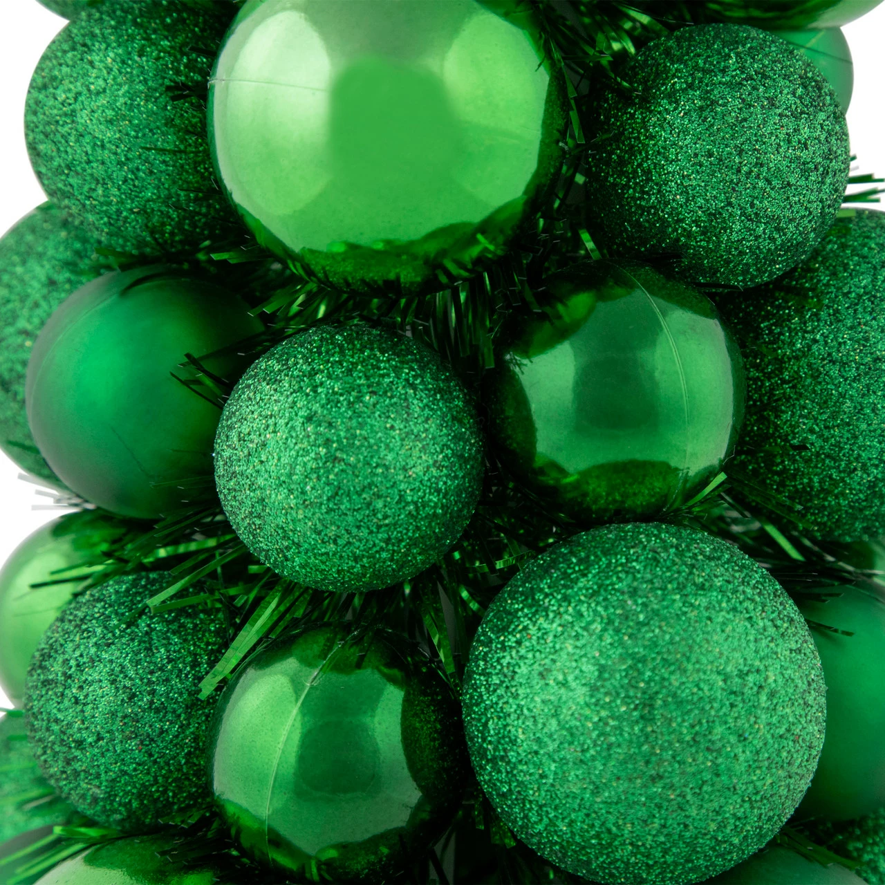 Shiny, glitter and matte green ball ornaments