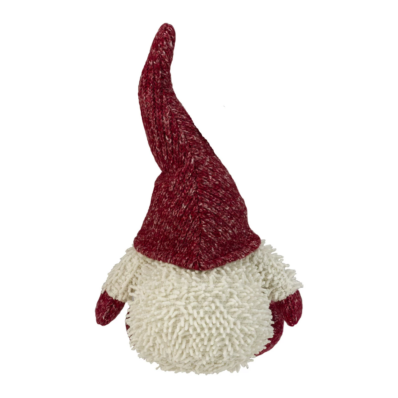 Gnome’s body is crafted from textured ivory and he wears a cute red yarn hat with hints of black and white