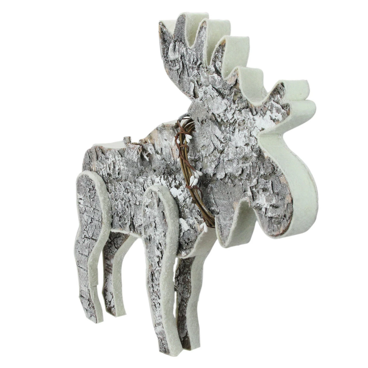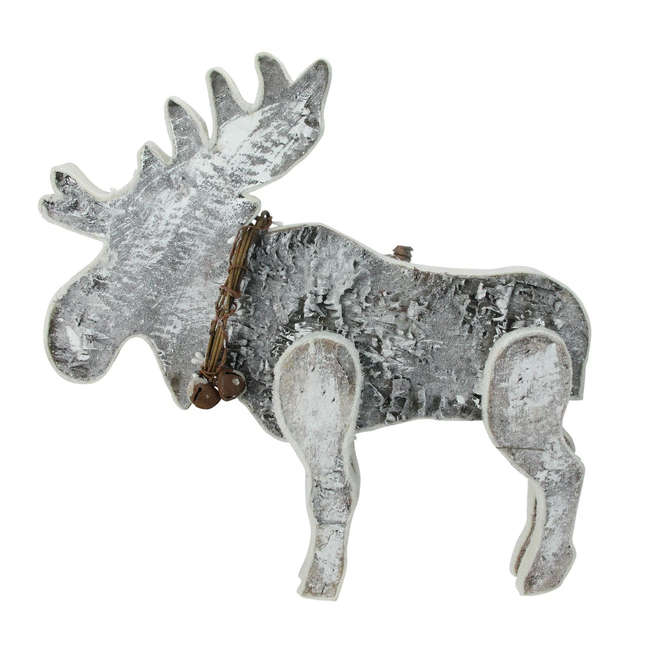 Features a rustic, raw wood cut out of a realistic moose with a harness