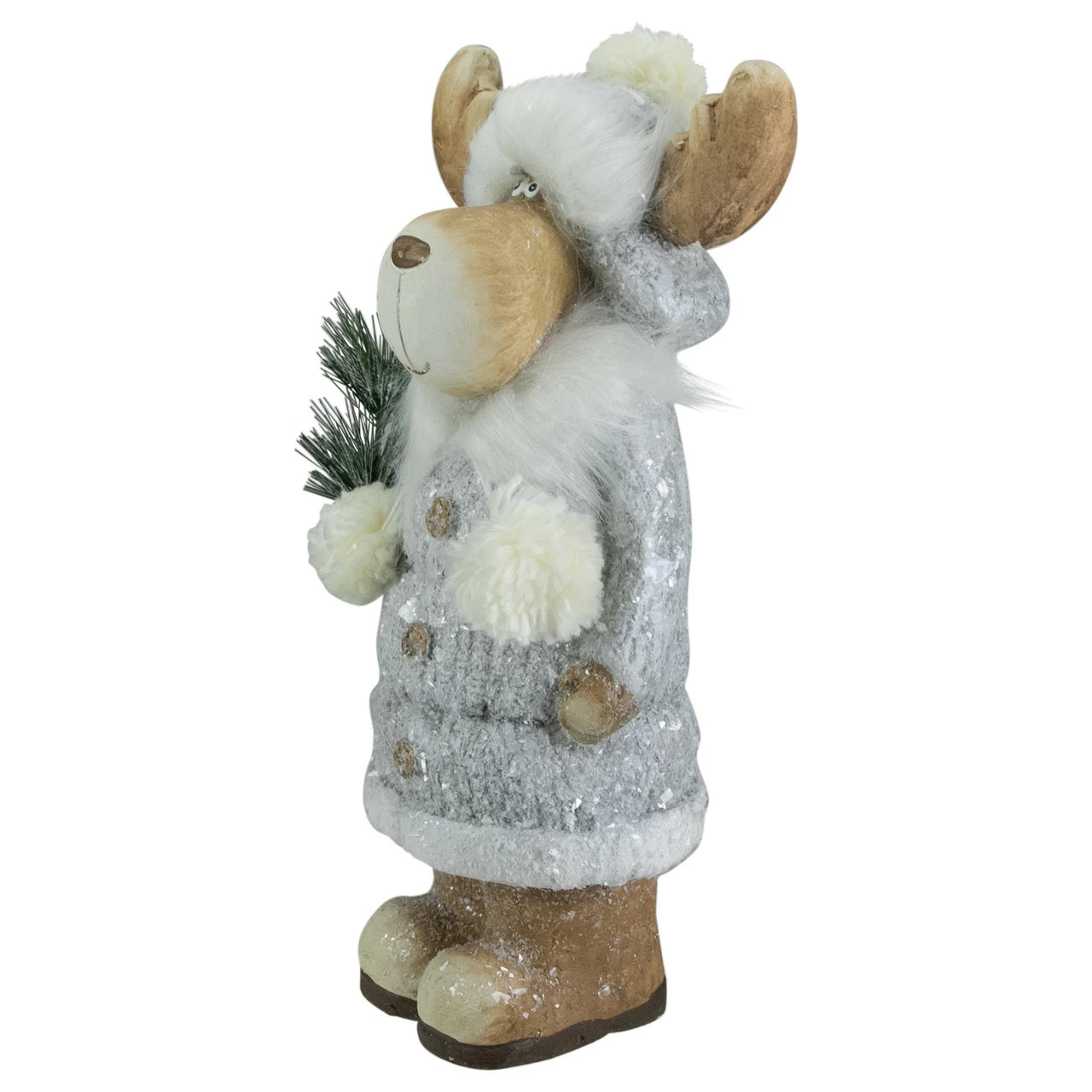 Standing winter moose with pine sprig figure