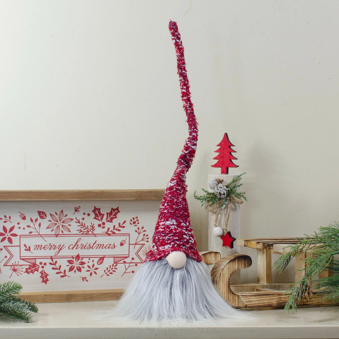Red and gray Christmas gnome figure
