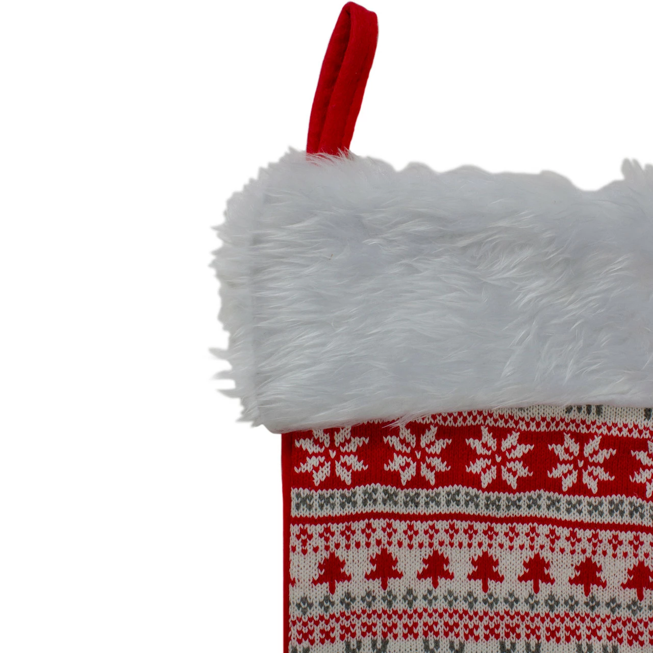 The stocking is white, gray and red