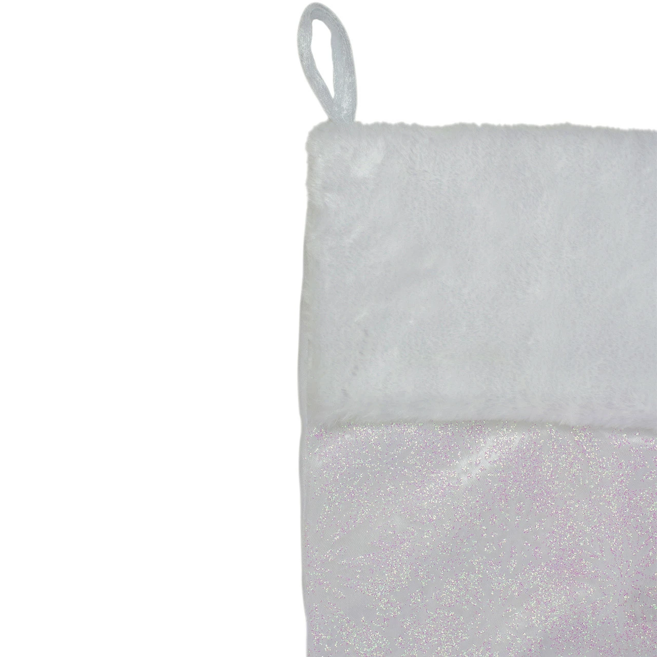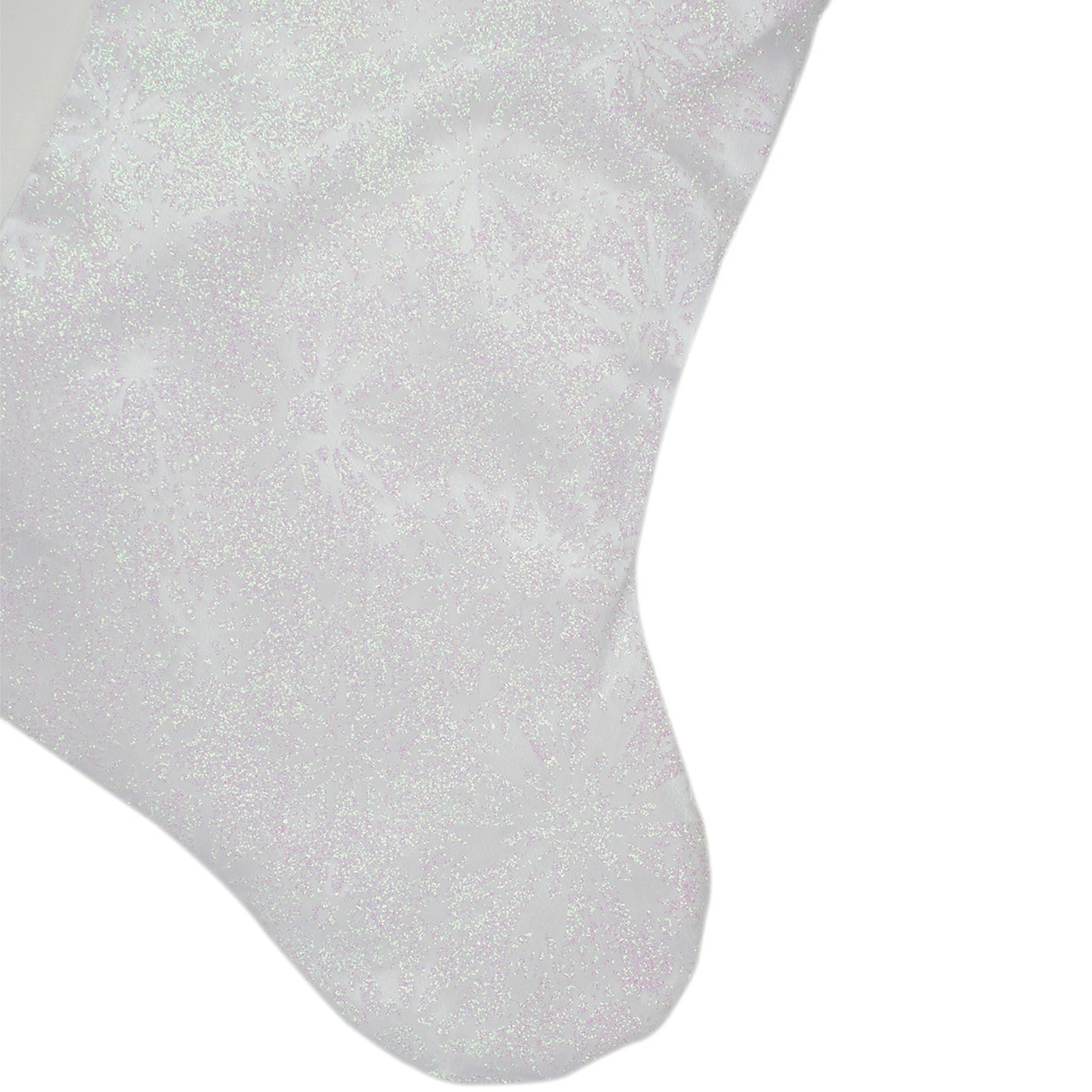 Features a snowflake stenciled design in iridescent glitter