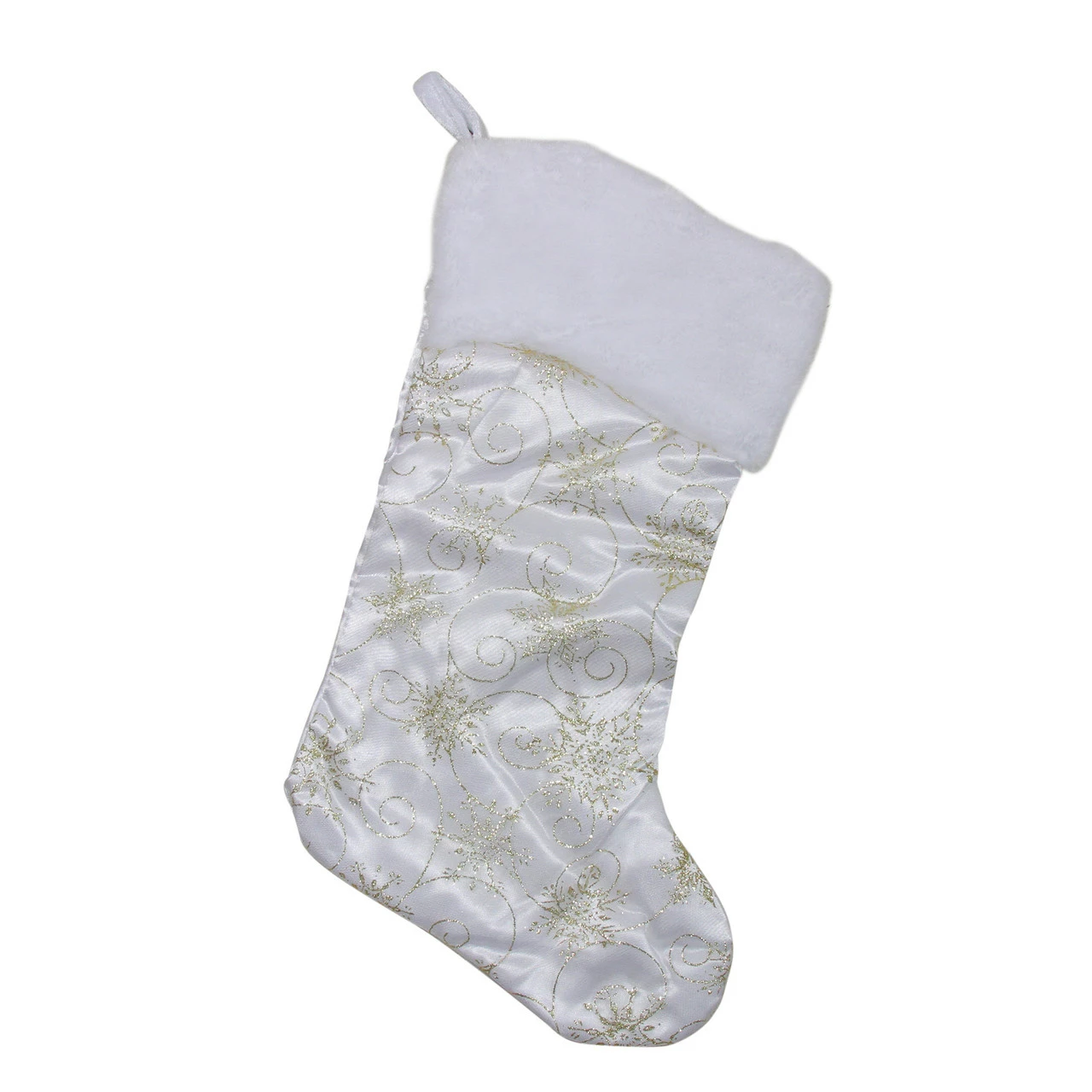 Accented with assorted sized, glittery gold snowflakes and swirls