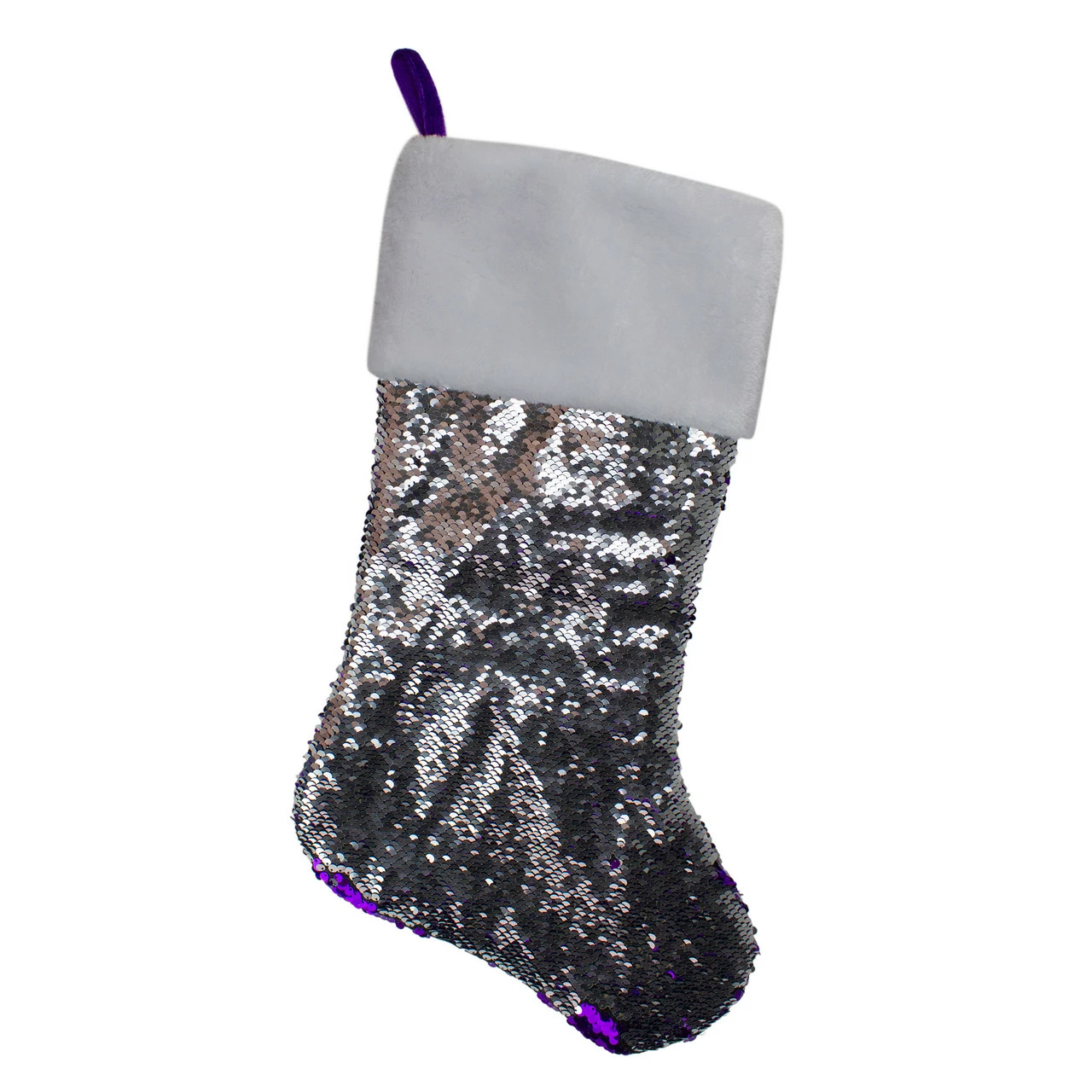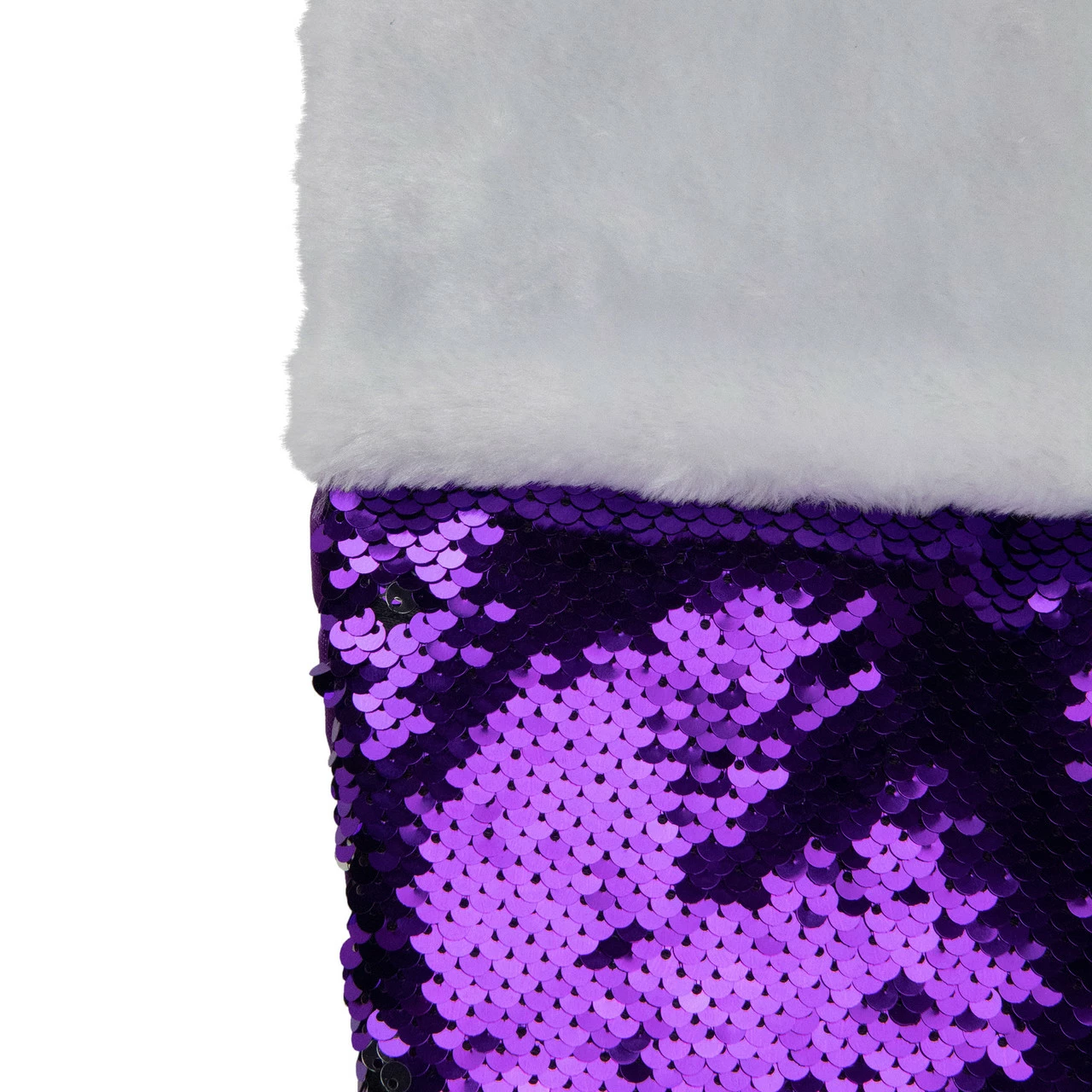 Purple reversible sequin slips to silver sequins with one swap of your finger