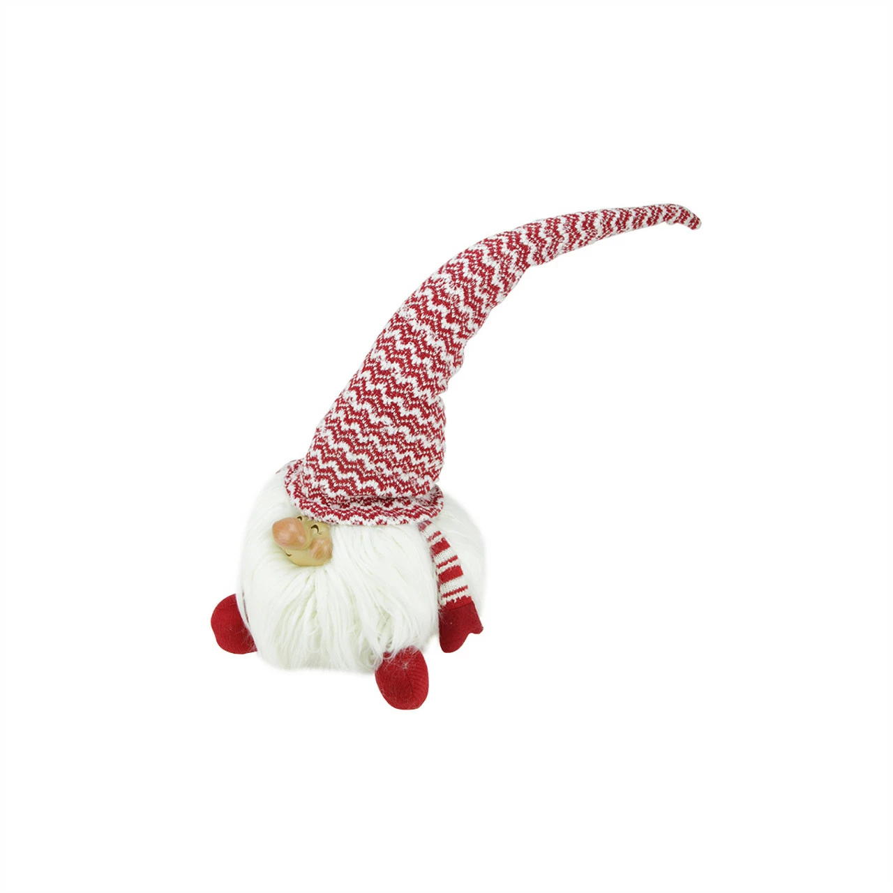 Red and white cheerful sitting Santa gnome tabletop