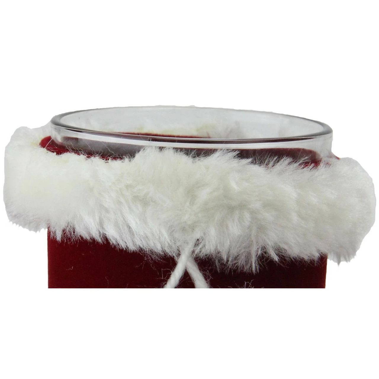 Red velvet trimmed in faux fur and pouf tassels
