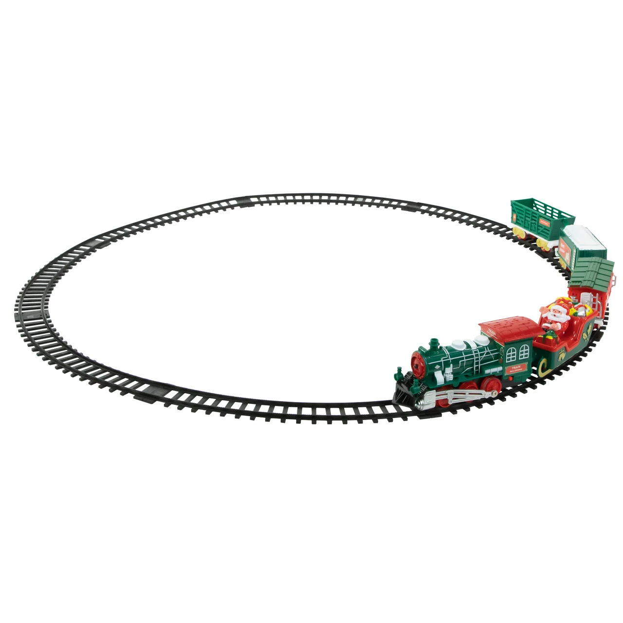 Train plays Jingle bells, Santa Claus is comin’ to town and We wish you a merry Christmas
