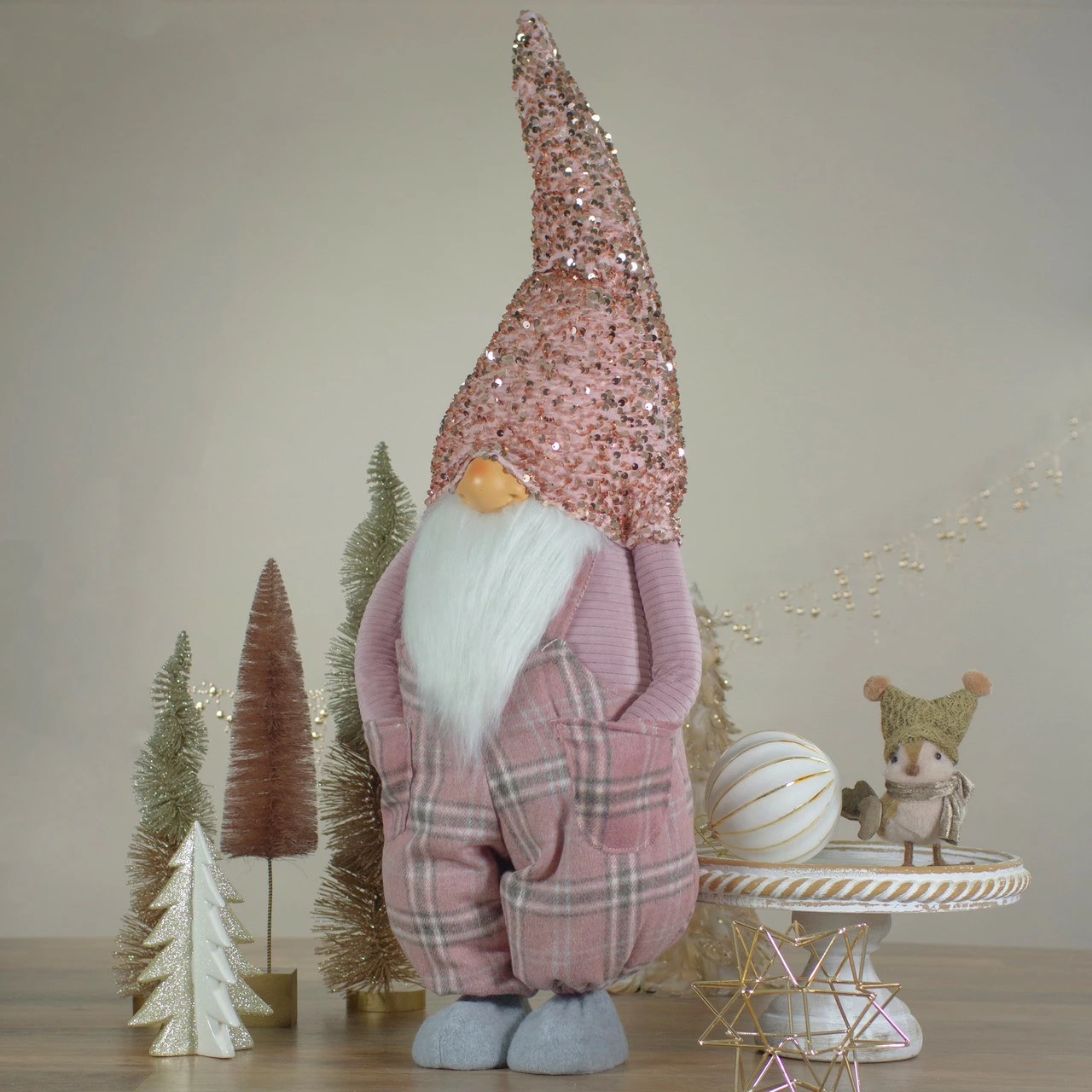 Pink plaid tall Christmas gnome