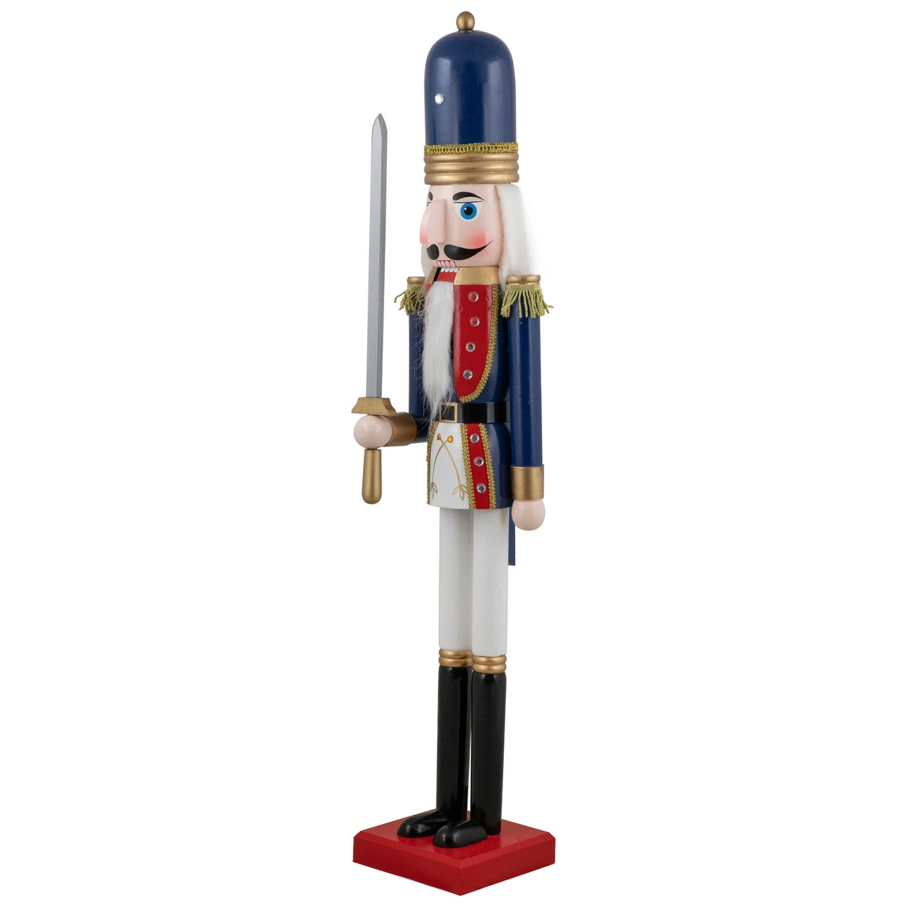 Comes in a red, white and blue uniform with a blue hat accented with gold trim