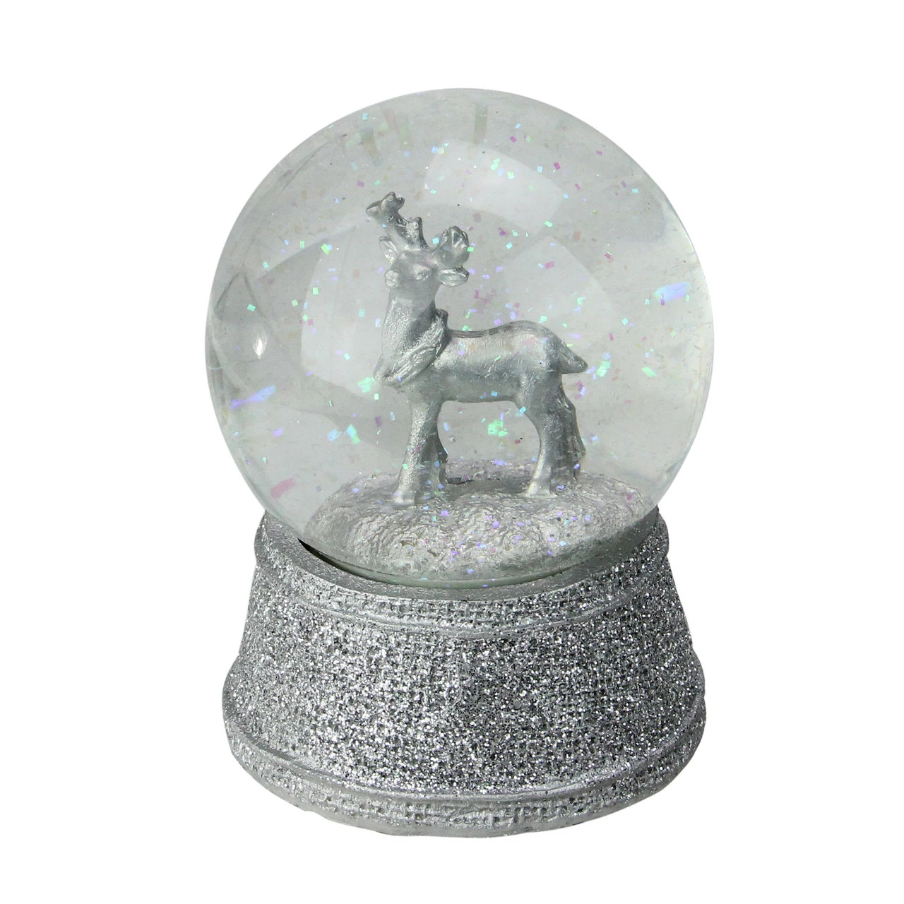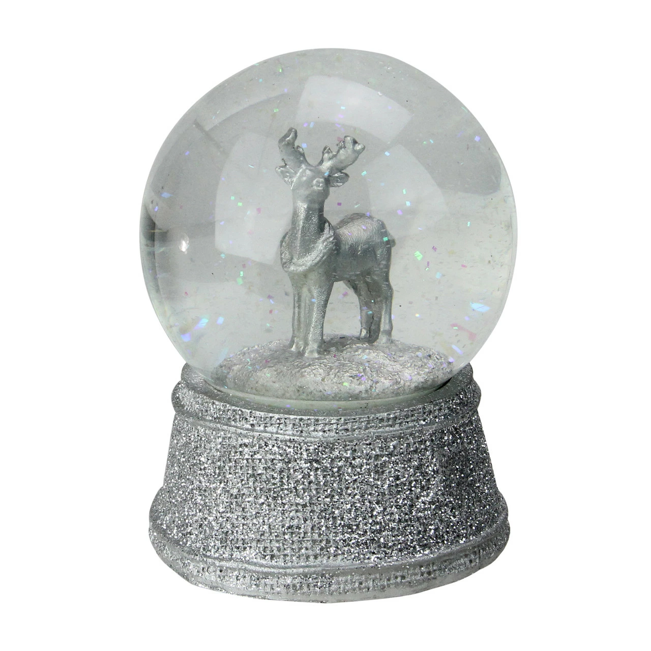 Silver reindeer snow globe