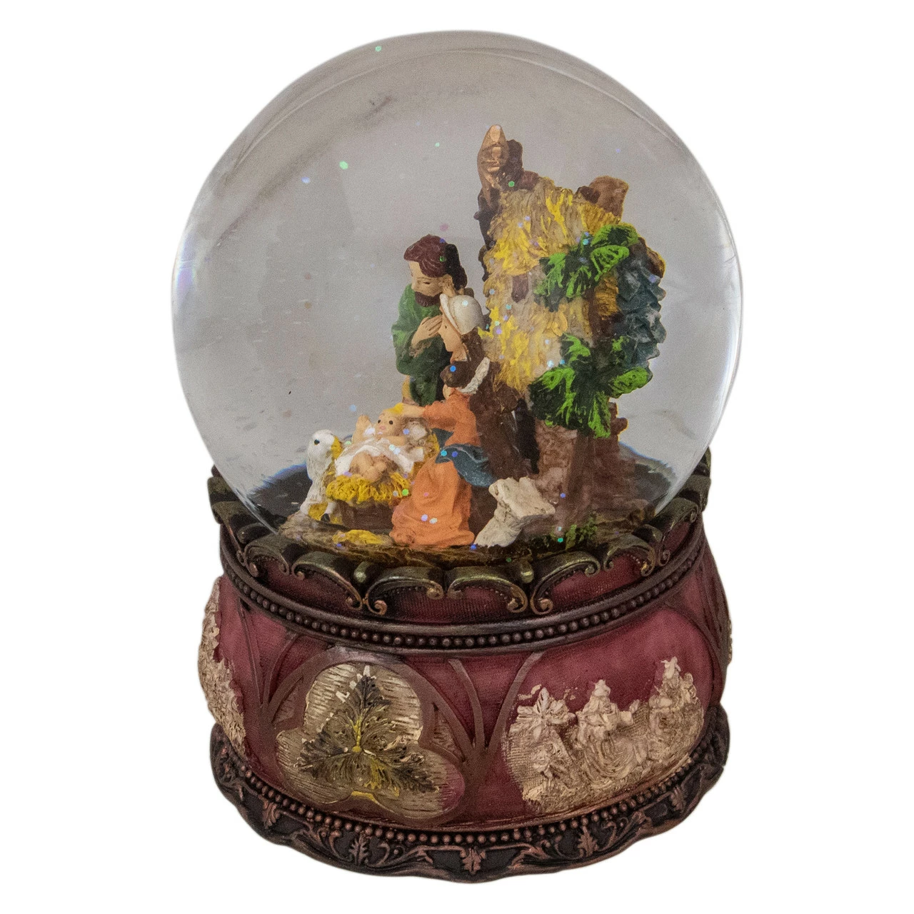 Globe interior features a Nativity scene with Mary, Joseph, and Baby Jesus