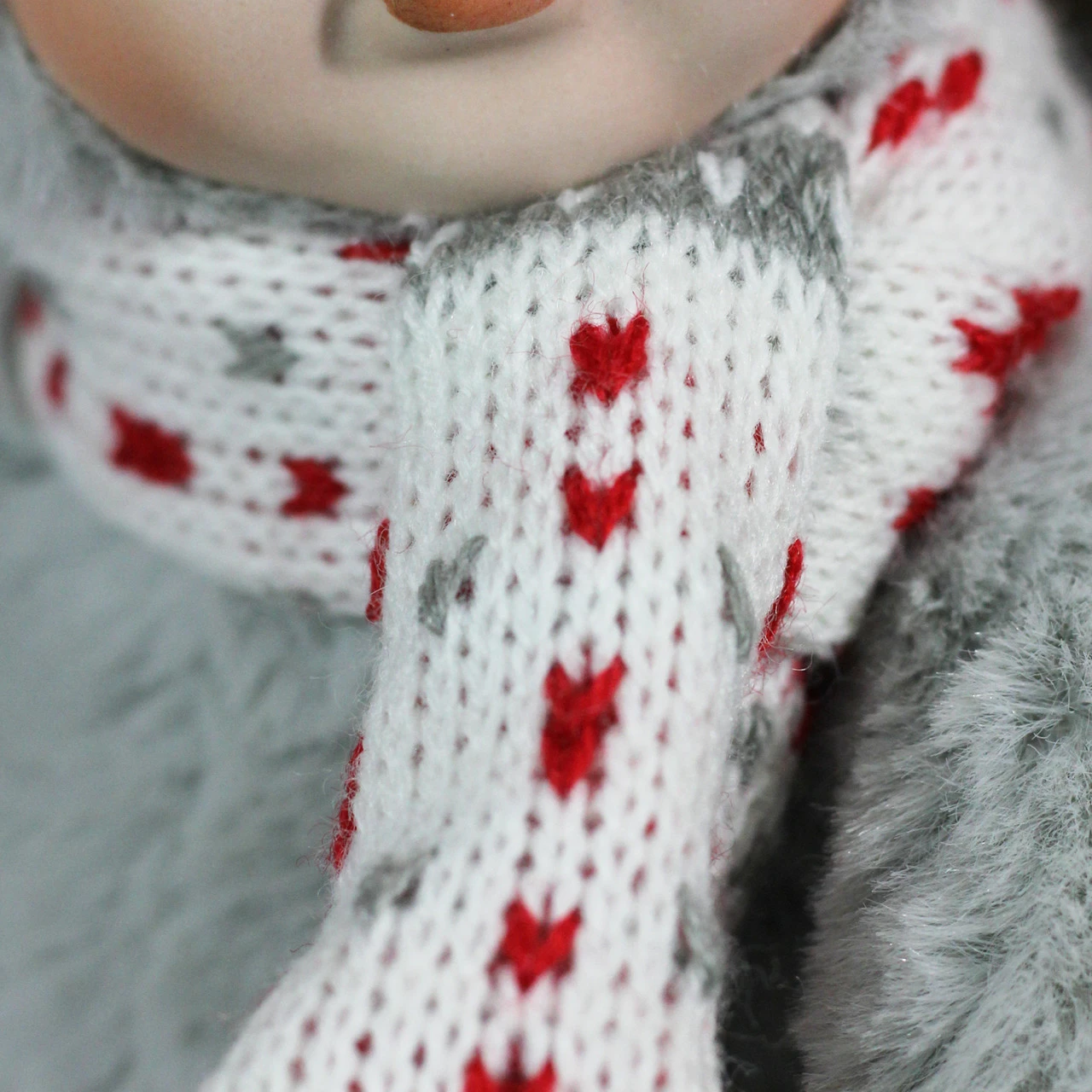 Comes with a red, gray and white scarf with white fringe