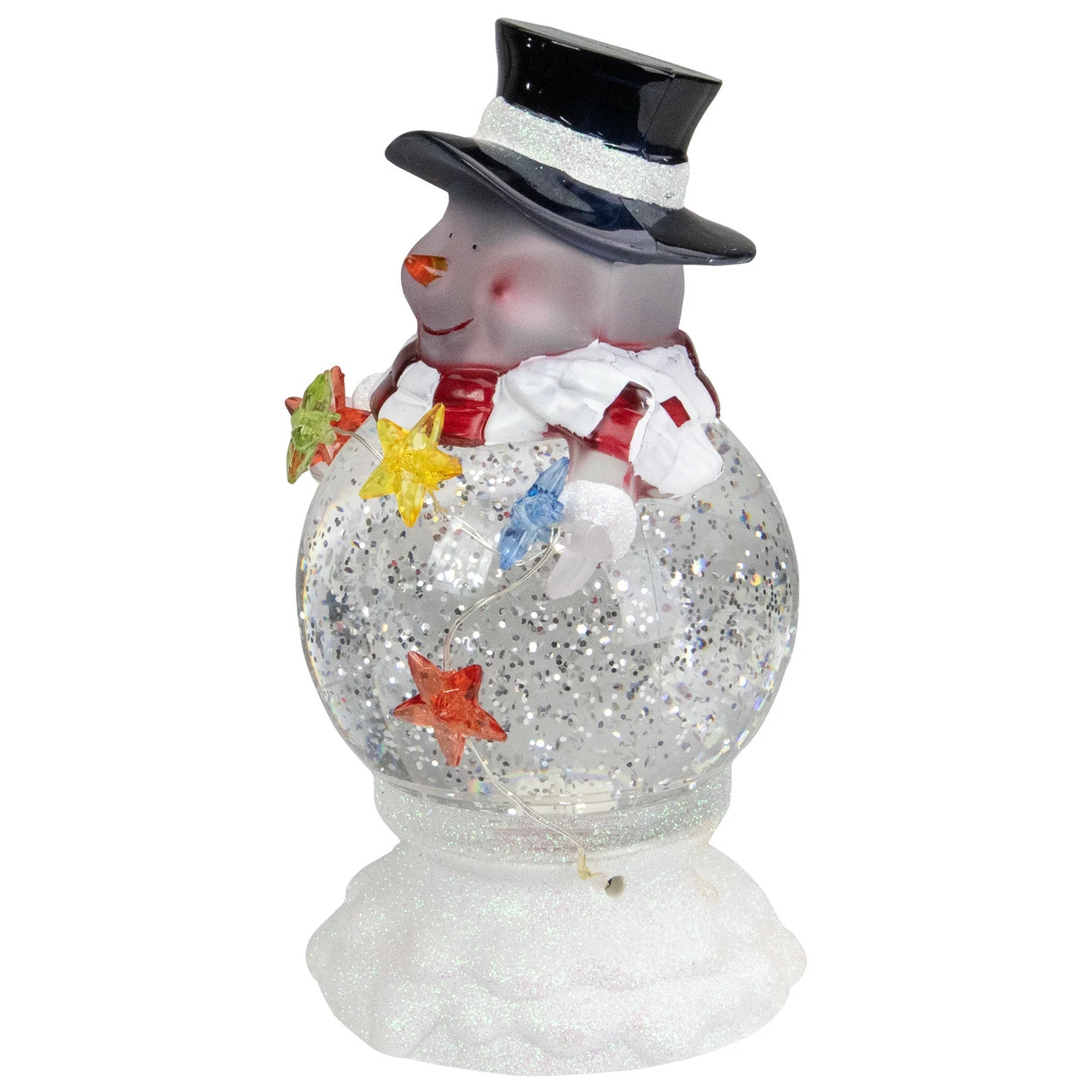 Bring a little light and shine to your decor with this LED tabletop snowman Glittering Snow Dome. LED lights in shades of red, blue and green illuminate the sparkling glitter that swirls around in the snowman’s belly creating quite a light show!