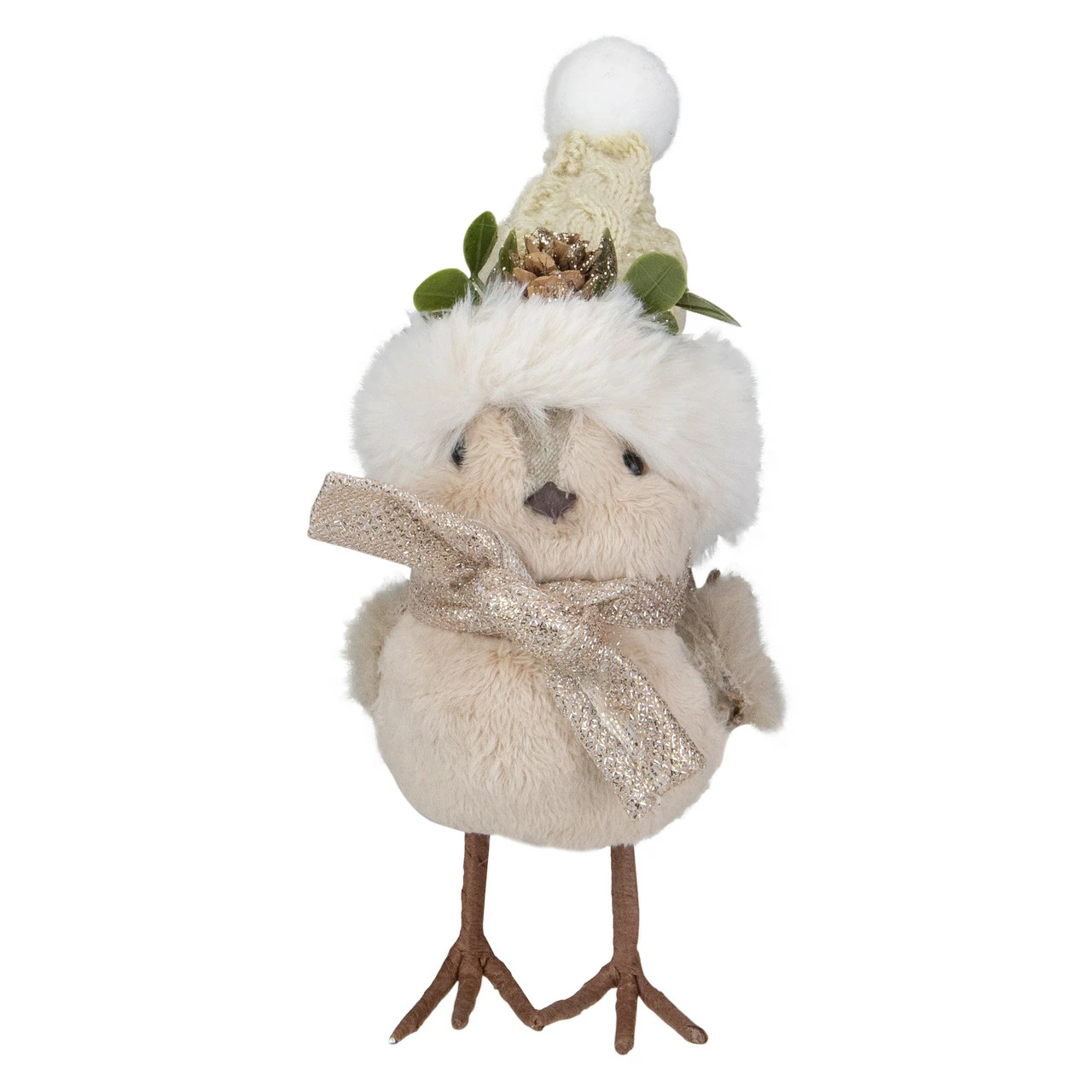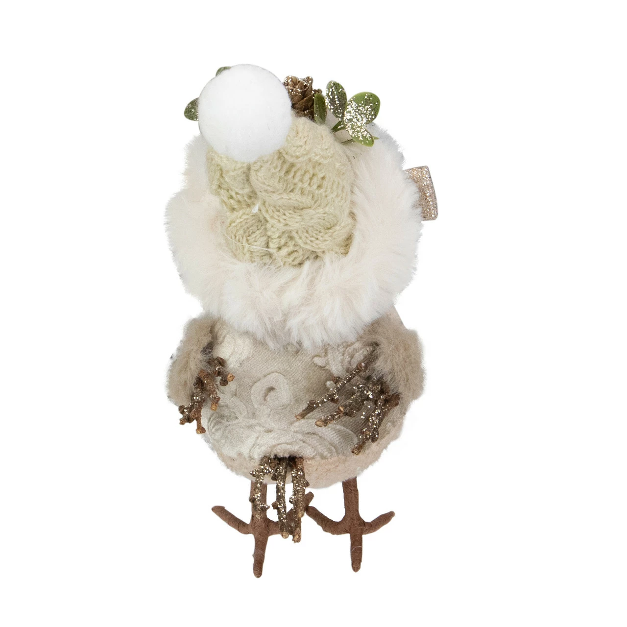 Hat has a glittered pine cone and green leaf embellishments
