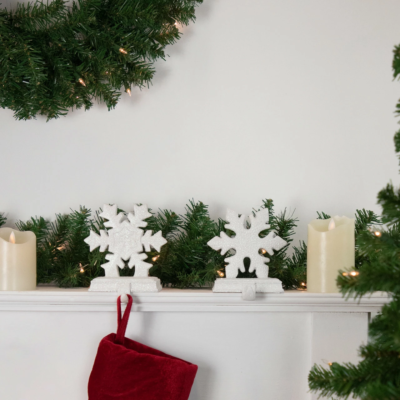 White snowflake stocking holders