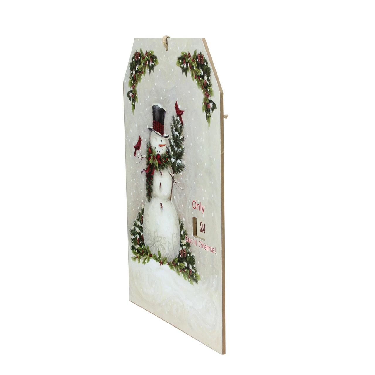 Features beautiful painting of a holiday snowman with cardinal birds