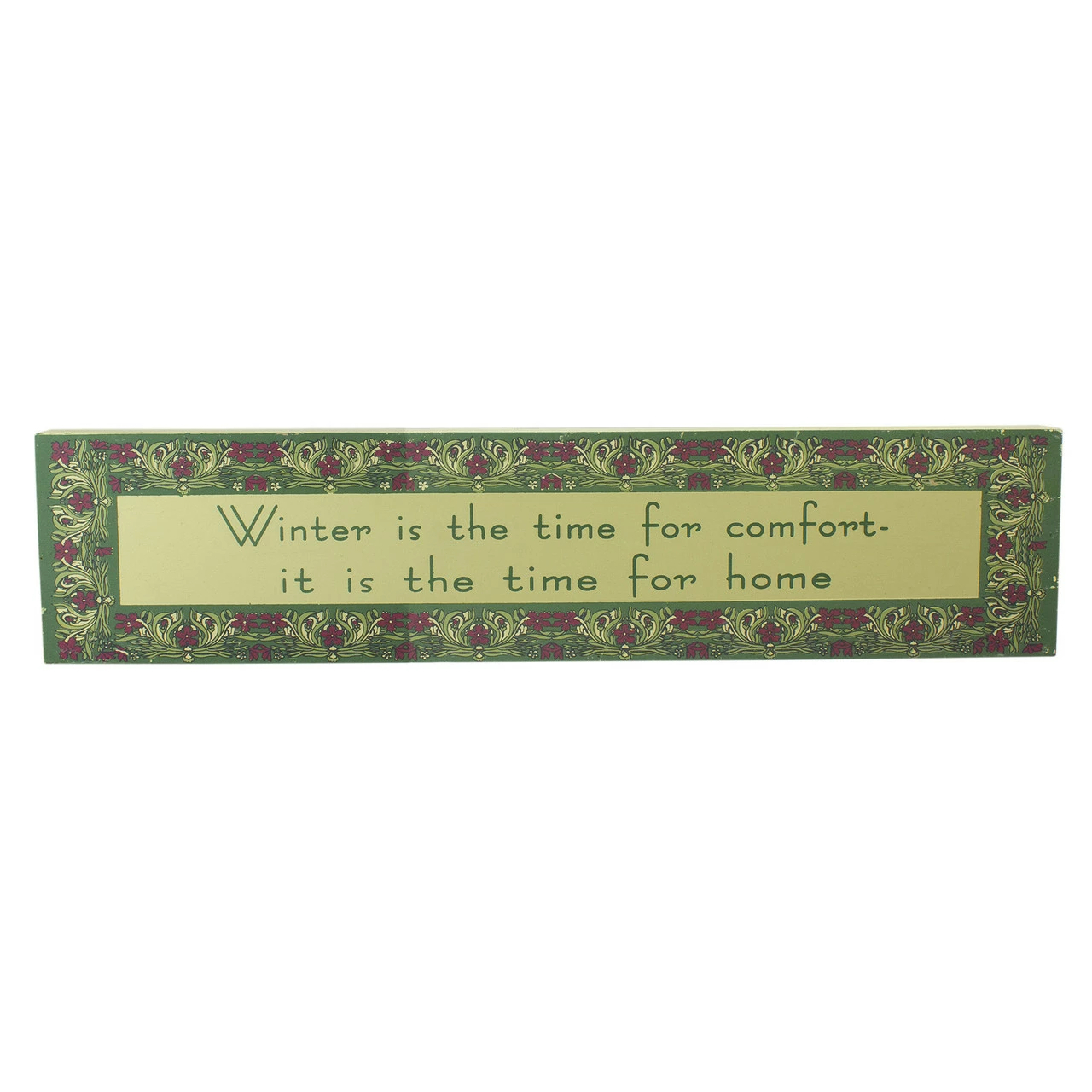 Features the words “Winter is the time for comfort – it is the time for home”