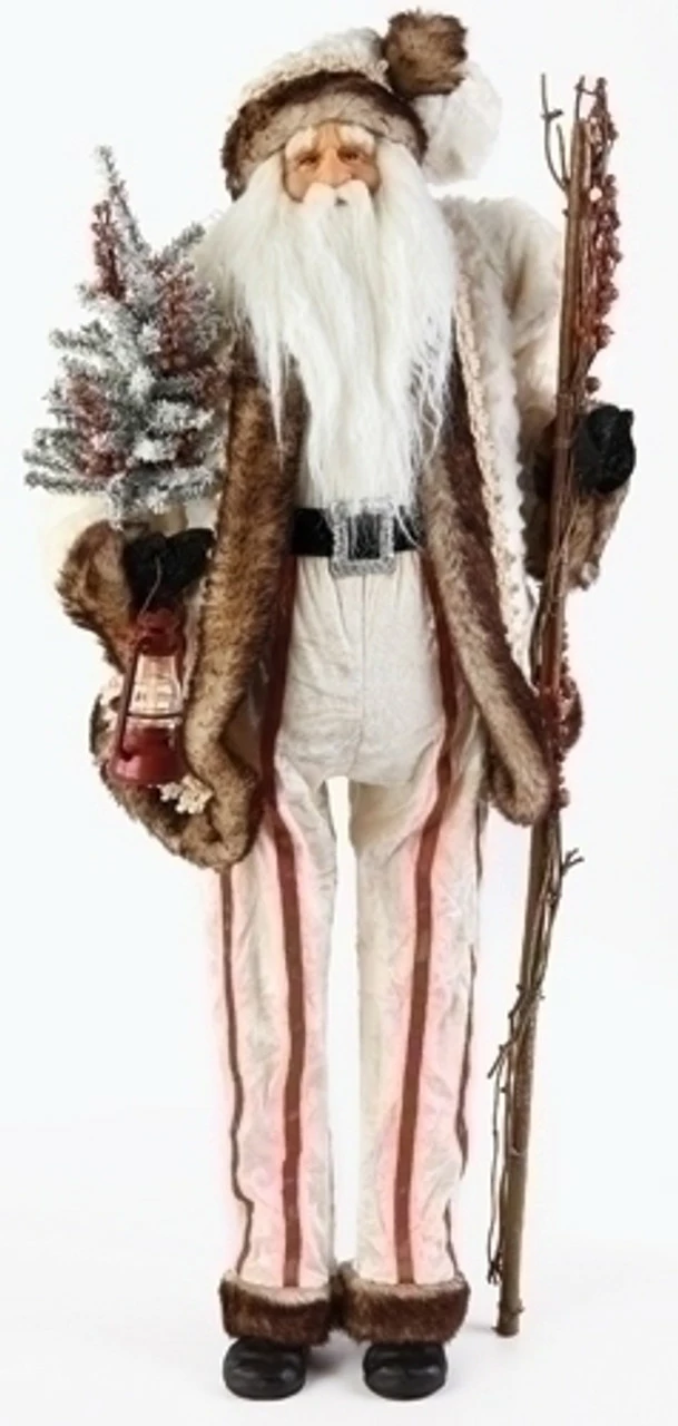 Features a standing Santa with lamp and staff