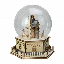 Roman 8.25″ White And Brown Musical Lighted Bell With Rotating Winter Scene Christmas Tabletop Decor