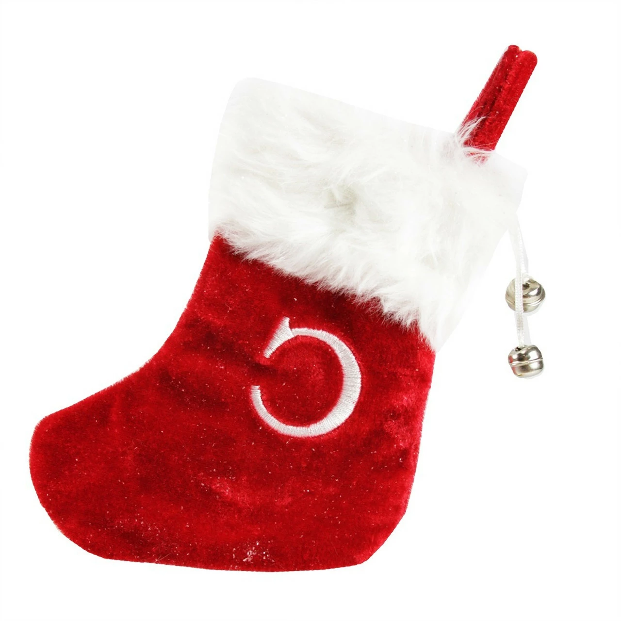 Red mini stocking comes with embroidered white “C”