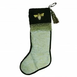 CC Christmas Decor 27″ Sage Green And Gold French Writing With Bee Christmas Stocking