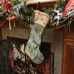 CC Christmas Decor 27″ Tortilla Brown And Sage Green Embroidered Patina Jacquard Christmas Stocking