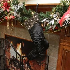 CC Christmas Decor 24″ Black And Gold Trimmed Jewel Christmas Stocking