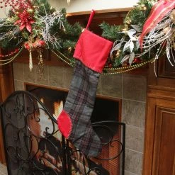 CC Christmas Decor 28″ Gray And Red Rustic Chic Plaid Christmas Stocking