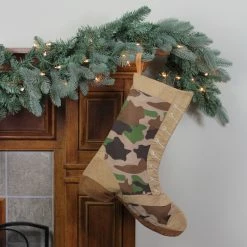 St. Nick’s Choice 20″ Suede Tan And Green Camouflage Military Boot Christmas Stocking