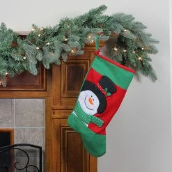 St. Nick’s Choice 19″ Red And Green Fleece Christmas Stocking With Snowman Applique
