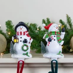 Northlight Set Of 2 Glitter Dusted Snowman Christmas Stocking Holders 7.25″